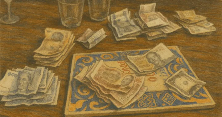 Edited photo of a stack of banknotes (Cambodian riels)