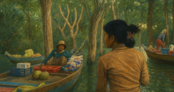 • Aboard a canoe in the floating village of Kampong Phluk